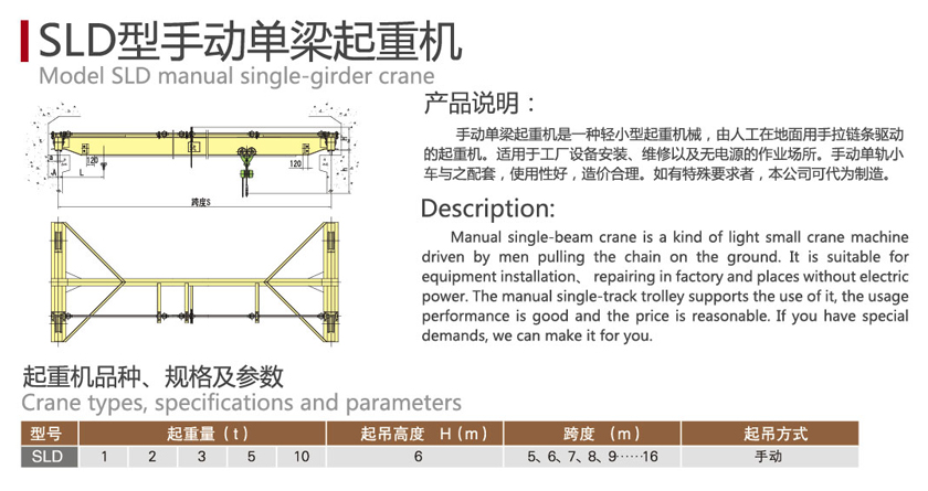 手動單梁起重機是一種輕小型起重機械,由人工在地面用手拉鏈條驅(qū)動的起重機。適用于工廠設(shè)備安裝、維修以及無電源的作業(yè)場所。手動單軌小車與之配套,使用性好,造價合理。如有特殊要求者,本公司可代為制造。